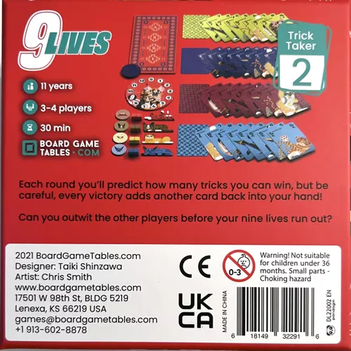 9 Lives — triukų (trick-taking) žaidimas, kuriame žaidėjai varžosi dėl taškų, spėdami, kiek triukų laimės. Žaidime naudojamos 3–4 rūšys, o kortų nugarėlės išduoda jų spalvą.
